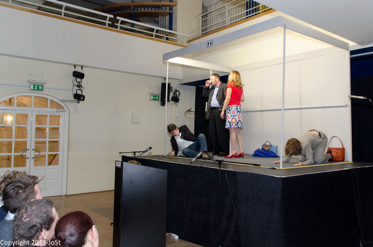 Wolfgang, Gilbert, Petra und Elvira alle knapp über 40 und einander unbekannt, betreten eine Liftkabine. Blöd, dass diese im vierzigsten Stockwerk plötzlich ihren Dienst aufgibt und die liebe Schicksalsgemeinschaft nötigt mit der Situation zurecht zu kommen. Eine beklemmend, skurrile, witzige Situation die dem Publikum einen kurzweiligen Abend beschert.